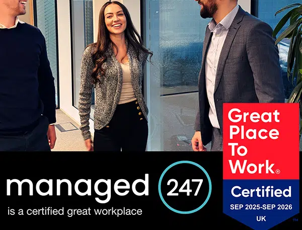 Managed247 is proud to be Certified by Great Place To Work. The prestigious award is based entirely on what current employees say about their experience working at Managed247.